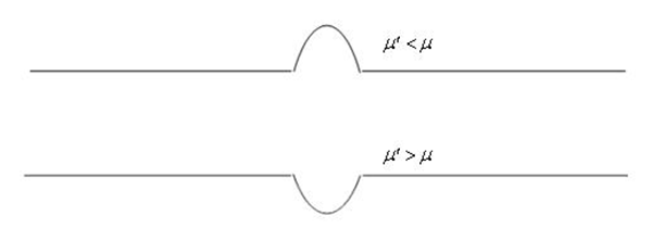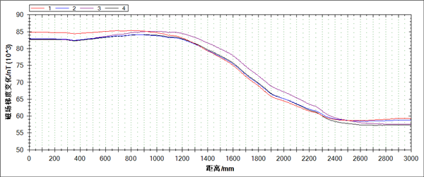 假設被檢工件本身的磁導率為μ,工件內部不連續區的磁導率為μ`,若是不連續區為高磁導率物質(zhì),即μ`>μ,那么在測磁傳感器通過(guò)該區域時(shí),磁感應強度曲線(xiàn)會(huì )出現下凹現象;若是不連續區域為低磁導率物質(zhì),即μ`<μ,那么在測磁傳感器通過(guò)該區域時(shí),磁感應強度曲線(xiàn)會(huì )出現上凸現象(圖1)。