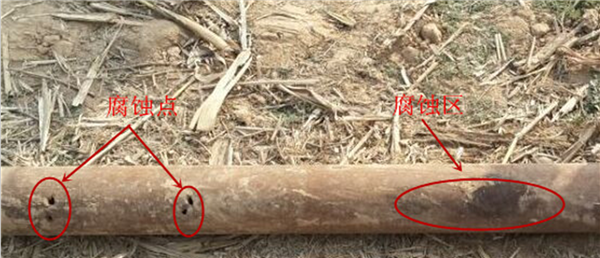 2017年,用非開(kāi)挖弱磁檢測儀對內蒙古某在役輸油管道進(jìn)行檢測。檢測段距離3 600 mm,管道埋深1 600 mm,管徑89 mm,壁厚6 mm。利用減震平衡器輔助傳感器在管道上方采集磁場(chǎng)數據。根據檢測結果找出腐蝕嚴重的點(diǎn),隨后開(kāi)挖驗證,結果見(jiàn)圖 9。