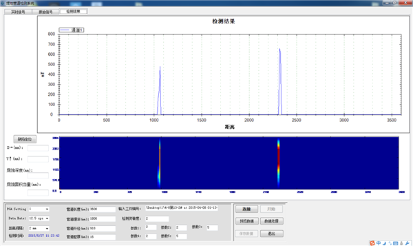 當被檢管道本身不存在腐蝕及其他類(lèi)型缺陷時(shí),檢測曲線(xiàn)變化較為均勻。當存在腐蝕缺陷時(shí),該區域磁場(chǎng)發(fā)生異常變化,經(jīng)數據分析軟件處理后實(shí)現二維成像,可對腐蝕減薄的位置及深度進(jìn)行定量研究。