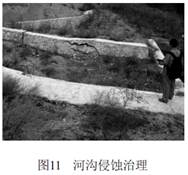 對于河溝山洪侵蝕, 治理措施多種多樣, 較為常見(jiàn)的為: 修建護岸引導洪水流向、 修建過(guò)水路面保護河床、 修建防沖墻防止河床下切等措施。 如圖11所示河溝洪水侵蝕治理。