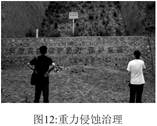 重力侵蝕是天然氣管道所面臨的一項重要威脅因素。 重力侵蝕一般造成的隱患風(fēng)險較大, 例如: 橫坡鋪設管道, 山體受重力侵蝕滑坡, 易造成管道斷裂。 目前針對重力侵蝕采取的措施是坡腳修建漿砌石擋土墻、 防止坡面進(jìn)一步下滑,坡面分層夯填, 形成梯田狀,在坡面修建合理的排水系統。如圖12所示治理措施。