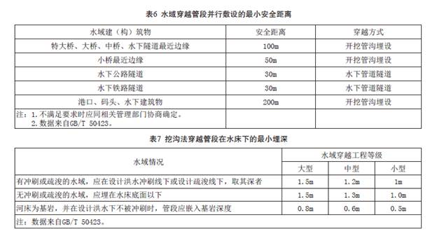 管道設計選線(xiàn)與外界的安全距離可參考表1~7,這些保護距離規定均來(lái)自現行國家或行業(yè)標準或規范。
