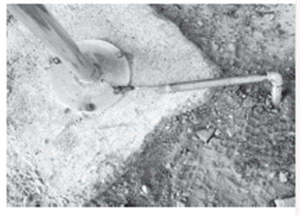 (3)罐體消防管線(xiàn)放水采用立管末端排水方式。而排出來(lái)的水直接排在罐體散水水泥板上, 經(jīng)過(guò)長(cháng)年運行,導致水泥板加速老化,出現裂縫,嚴重的可能導致大罐地基變形,威脅大罐運行安全(圖3)。
