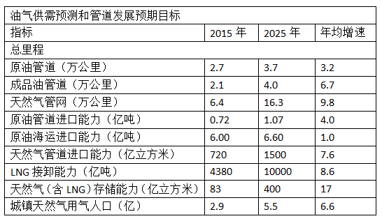本規劃中,石油、天然氣管道網(wǎng)絡(luò )(以下簡(jiǎn)稱(chēng)“油氣管網(wǎng)”是指原油、成品油、天然氣輸送管道及相關(guān)儲存設施、港口接卸設施等組成的基礎設施網(wǎng)絡(luò )。油氣管網(wǎng)是國家重要的基礎設施和民生工程,是油氣上下游銜接協(xié)調發(fā)展的關(guān)鍵環(huán)節,是現代能源體系和現代綜合交通運輸體系的重要組成部分。超前謀劃,加快建設形成布局合理、覆蓋廣泛、外通內暢、安全高效的現代油氣管網(wǎng),對于保障能源安全穩定供應、降低經(jīng)濟運行成本、增加社會(huì )有效投資、提高人民生活品質(zhì)具有重要作用。根據《中共中央國務(wù)院關(guān)于深化石油天然氣體制改革的若干意見(jiàn)》和《能源生產(chǎn)和消費革命戰略(2016-2030)》精神,特制定《中長(cháng)期油氣管網(wǎng)規劃》。本規劃是我國油氣管網(wǎng)中長(cháng)期空間布局規劃,是推進(jìn)油氣管網(wǎng)建設的重要依據。規劃期為2016-2025年,遠期展望到2030年。
