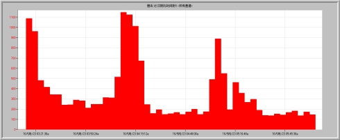 圖9 所有通道撞擊數隨時(shí)間變化圖