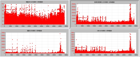 所有通道的幅值、持續時(shí)間、能量、計數隨時(shí)間的變化如圖8所示: