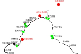 圖1 高壓直流輸電接地極與廣東管網(wǎng)管道相對位置圖