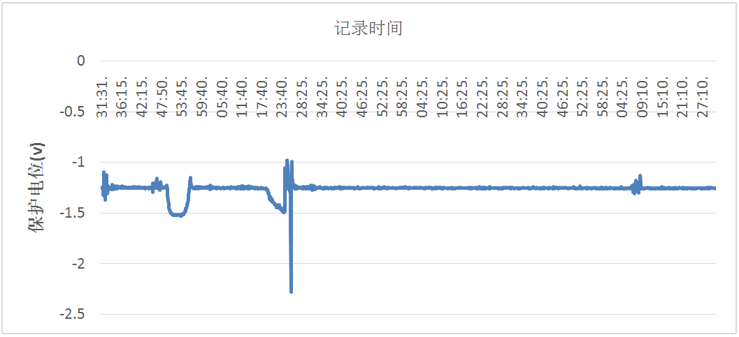 對b號閥室恒電位儀工況及保護電位現場(chǎng)進(jìn)行檢測,并未發(fā)現異,F象。