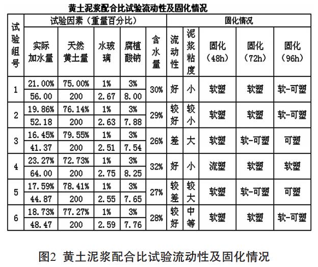 為驗證方案的可行性, 四川省地質(zhì)工程勘察院進(jìn)行了黃土泥漿配合比現場(chǎng)試驗及斜井試點(diǎn)施工。
