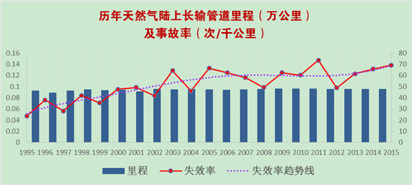 截至2015年,美國油品管道約21×104 km,天然氣管道約48×104 km,是世界上擁有管道里程最長(cháng)的國家。其管道和危險材料安全管理局(PHMSA)所管理的管道失效數據庫,定期更新發(fā)布近20年來(lái)的管道失效統計數據及每起失效的詳細信息。