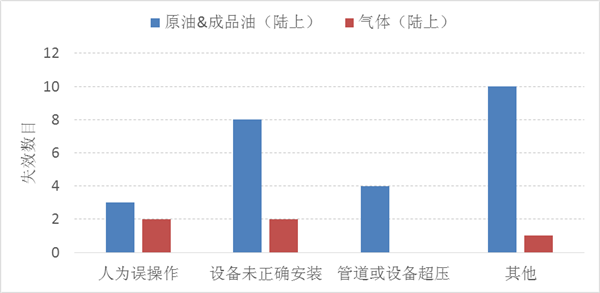 統計分析2010年以來(lái)美國432起油品管道事故和238起天然氣管道事故,排名前三位的失效原因分別為腐蝕、管體/焊縫材料失效和設備失效;管體/焊縫材料失效、開(kāi)挖損傷和腐蝕(圖3、4)。