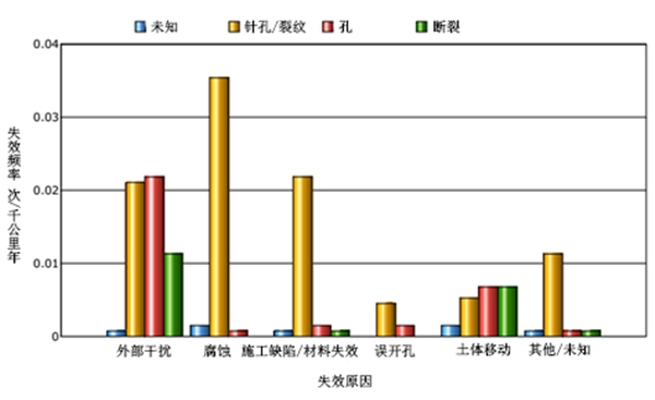 (1)受經(jīng)濟發(fā)展現狀制約,打孔盜油成為我國管道失效的最主要因素,而國外卻較少發(fā)生。隨著(zhù)相關(guān)立法和宣傳的不斷加強,這一失效因素的比例將不斷降低。