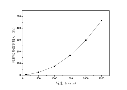 實(shí)驗室攪拌釜內徑100 mm,攪拌器直徑60 mm,寬度3 mm,在100 r/min、500 r/min、1000 r/min、1500 r/min、2000 r/min、2500 r/min轉速條件下,計算分析釜壁剪切力與中心截面速度變化情況,