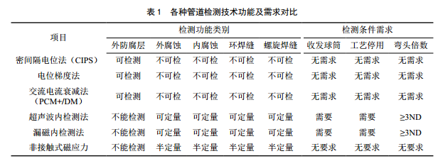 1 管道檢測技術(shù)現狀對比