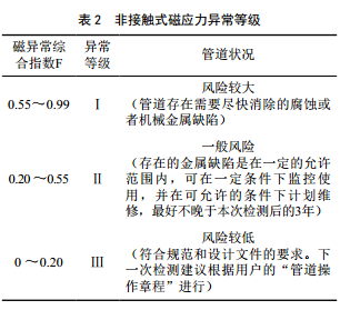 檢測完成后,選擇部分異常點(diǎn)進(jìn)行開(kāi)挖,對磁應力檢測結果進(jìn)行修正。如果開(kāi)挖評價(jià)結果比磁檢測結果評價(jià)輕,應按開(kāi)挖評價(jià)結果適當提高該管段的磁異 常綜合指數F值;如果開(kāi)挖結果比磁檢測結果嚴重,應適當降低F值;如果開(kāi)挖結果比磁檢測結果嚴重很多,應降低F值,重新排列開(kāi)挖點(diǎn),并對這種情況的磁異常段進(jìn)行優(yōu)先開(kāi)挖。