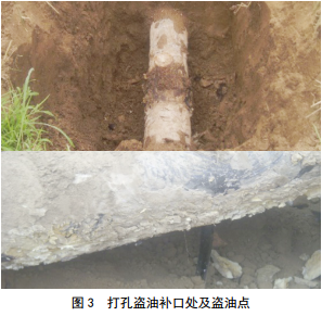 某采油廠(chǎng)原油外輸管道輸差波動(dòng)較大,懷疑管道存在腐蝕穿孔或有不法分子打孔盜油,多次巡查現場(chǎng)沒(méi)發(fā)現問(wèn)題。采用防腐層破損點(diǎn)查找技術(shù)沿管道敷設軌跡進(jìn)行破損點(diǎn)查找,共發(fā)現27處破損點(diǎn)。對其全部開(kāi)挖驗證:其中22處為歷年來(lái)發(fā)生打孔盜油的補口位置, 4處為外防腐層破損點(diǎn), 1處為不法分子打孔盜油點(diǎn)(圖 3)。