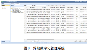 為方便查詢(xún)和調用,根據各焊口編號,進(jìn)行焊縫編碼的同時(shí)進(jìn)行數據庫的建設,其主要包括以下各支線(xiàn)無(wú)損檢測報告、復評數據統計、數字化掃描結果、識別評價(jià)分析報告等。圖 8所示為焊縫數字化管理系統。