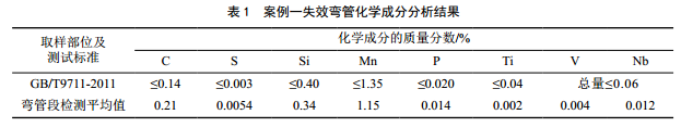 化學(xué)成分測試結果如表 1所示,其中管材的C元 素和S元素含量高于標準要求。
