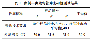 ﹣20℃溫度下夏比沖擊試驗結果如表3所示?梢钥闯鲈摱喂懿膯蝹(gè)樣品沖擊功滿(mǎn)足技術(shù)規格書(shū)要求,但樣品的平均值未達到技術(shù)規格書(shū)要求的40 J。