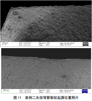 通過(guò)對兩個(gè)失效熱煨彎管的管材材質(zhì)測試,斷口測試結合服役環(huán)境和受力分析,對失效彎管的開(kāi)裂進(jìn)行了根源性分析。分析結果表明,兩個(gè)彎管的材質(zhì)均不滿(mǎn)足標準要求,受彎制工藝的影響,組織發(fā)生變化,硬度和強度均大幅提高,在環(huán)境中內部/外部氫及局部應力的影響下,發(fā)生開(kāi)裂,并在應力的作用下繼續擴展失效。