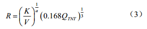 根據相關(guān)資料研究表明, C、 D級煙花鞭炮中1 t火藥折算TNT當量約為0.42 t,火藥占煙花藥劑比例約為40%[2]。 QTNT =Q×0.42×0.4=0.168Q。