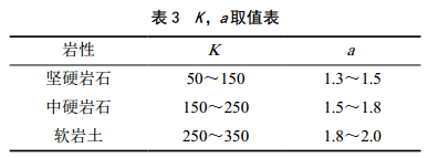 同樣,在無(wú)試驗數據的條件下,可參考表 3 中軟巖土對應的K , a 最大值選取。該公式計算值比實(shí)際影響值大,可作為參考。