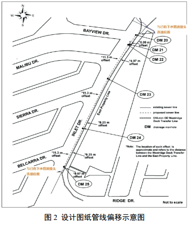 管道在DM 25處的實(shí)際位置比預計的更加靠近下水道的設計位置,存在誤判。如果根據交叉施工協(xié)議和NEB法規條款規定,在施工前檢測管道的深度和位置,該問(wèn)題將被發(fā)現。