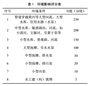 (5)環(huán)境影響評分見(jiàn)表 1。