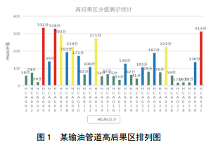 (2)系統根據識別結果分值大小自動(dòng)繪制排列圖,直觀(guān)展示整條管道高后果區。按規定顏色,自動(dòng)以不同顏色顯示不同級別高后果區。
