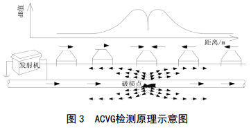 埋地管道外防腐層破損點(diǎn)檢測一般采用交流電位梯度法(Alternating Current Voltage Gradient,ACVG),檢測原理如圖 3所示。拆除接地裝置后,檢測出的異常也可能是干擾信號,僅作為參考[5]。當無(wú)法實(shí)施ACVG檢測時(shí),因埋地管道敷設環(huán)境、施工條件相似,采取開(kāi)挖抽查直接檢測,基本能反映防腐層的狀況。
