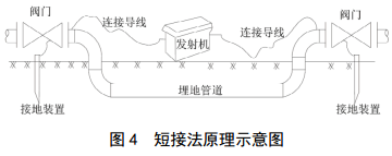 受接地網(wǎng)、相鄰管道、電纜、用電設備的影響,站場(chǎng)內埋地管道的定位存在很多困難,采用“短接法”可以提高其定位精度[6]。但需要注意,當接地網(wǎng)產(chǎn)生的回路電阻小于埋地管道形成的回路,需要斷開(kāi)接地回路,否則“短接法”定位的為接地網(wǎng)的位置,如圖 4所示。