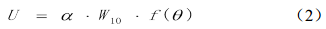 式中α 為風(fēng)拖曳系數, f(θ)為科氏力引起的偏轉角的函數, θ 為偏轉角。