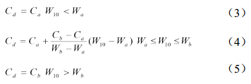 風(fēng)拖曳系數是海洋大氣物理學(xué)中的重要參數,本次采用WuJin公式,即: