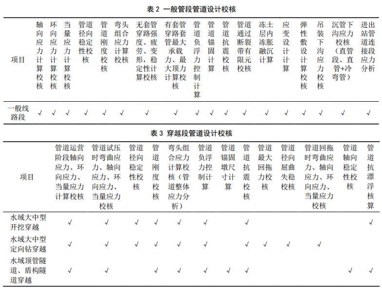 (2)提升應力校核水平。在初步設計和施工圖設計階段,開(kāi)展不同管段應力校核,結合施工圖敷設情況,篩選典型地段,考慮管道可能經(jīng)受的外部荷載情況,采用有限元軟件進(jìn)行實(shí)際工況下的應力校核,確保管道應力不超過(guò)規范許用應力,如表 2、表 3所示。