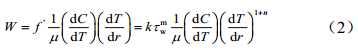 為徑向溫度梯度,℃/mm;k、m、n為常數,需要通過(guò)實(shí)驗確定。相應的蠟沉積速率計算公式為: