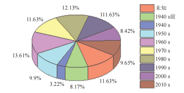 建設年代較早的燃氣管道事故數量略高于建設年代較晚的燃氣管道(圖 2),但總體上不同年代建設的管道其事故所占比例相差不大,說(shuō)明燃氣事故發(fā)生數量與管道新舊程度沒(méi)有太大關(guān)系。