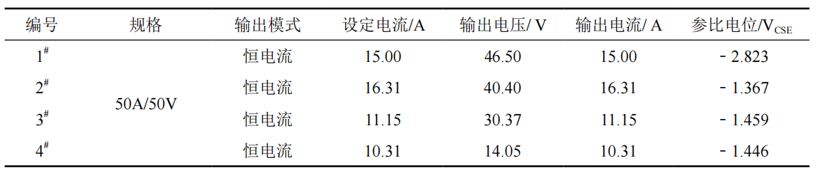 表 3 治理措施實(shí)施后恒電位儀的參數及運行狀態(tài)