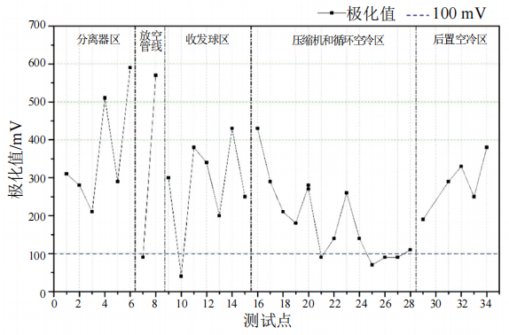 圖 4 站場(chǎng)埋地管道極化值測試結果