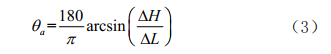 管道敷設傾角用高程變化量來(lái)確定,單位為度或弧度。傾角的正弦為單位管長(cháng)高程的變化量,見(jiàn)式(3):