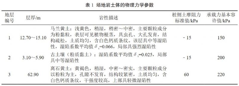 施工場(chǎng)地位于西北地區,根據地質(zhì)資料,場(chǎng)地巖土體的物理力學(xué)參數如表 1所示。