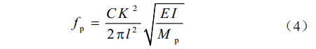 式中fp為海底懸空管段的固有頻率,Hz;C為系數(水中振動(dòng)取0.7,空氣中振動(dòng)取1.0);K為系數;ι 為海底懸空管段跨長(cháng),m;I為管道斷面的慣性矩(雙層管可按復壁鋼管計算),m4;E為管材彈性模量,E=210 GPa;Mp為海底管道單位長(cháng)度質(zhì)量,kg/m。K為與海底懸空管段兩端支撐條件有關(guān)的系數,兩端固定連接(固定支撐)時(shí) K=3/2π=4.73;兩端鉸支連接(簡(jiǎn)單支撐)時(shí)K=π=3.14;一段鉸支、另一端固定連接時(shí)按簡(jiǎn)單支撐計算。
