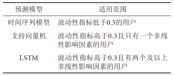 基于需求側分析,可以對任務(wù)周期內的市場(chǎng)需求進(jìn)行預測并確定各個(gè)需求點(diǎn)(分輸點(diǎn))的重要性。天然氣用戶(hù)按用氣用途分類(lèi),主要包括燃氣用戶(hù)、CNG用戶(hù)、電廠(chǎng)用戶(hù)和工業(yè)用戶(hù)四大類(lèi)型。一般而言,天然氣管網(wǎng)各個(gè)分輸點(diǎn)都包含多個(gè)和多種天然氣用戶(hù)。各用戶(hù)所適用的預測模型是根據用戶(hù)特性確定的,其中波動(dòng)性是影響需求預測效果的重要因素。因此建立波動(dòng)性指標,以此為用戶(hù)選取適用的預測模型。本文采用時(shí)間序列法、支持向量機和LSTM模型作為用戶(hù)需求預測的三種方法進(jìn)行建模,各方法的使用范圍如表 1所示。