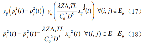式中,Eb表示雙向管道的集合,yij( t )為控制 t 時(shí)刻雙向管道流向的二元決策變量。