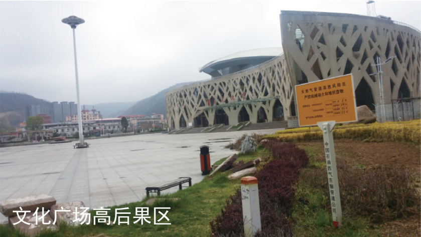 西氣東輸一線(xiàn)山西蒲縣段管道穿越蒲縣縣城約2.6 km,建設初期管道地區等級為一、二級地區,周邊無(wú)大型及高層建構筑物。自2007年起,隨著(zhù)蒲縣城區不斷擴張,管道周邊5 m~50 m范圍內新增奧體中心等大型建筑物17處,50 m~100 m范圍內新增西關(guān)居民區等15處,有高級中學(xué)等6處圈占管道。以上建構筑物集中在8 km管段范圍內,涉及人口約1萬(wàn)人,地區等級升級為四級地區(Ⅲ級高后果區),部分地段管道壁厚和閥室間距不能滿(mǎn)足規范要求。西氣東輸公司多次致函或前往市、縣政府部門(mén)匯報請求避讓管道。在地方政府的大力支持下,部分建構筑物主體工程進(jìn)行了避讓?zhuān)珶o(wú)法避免高后果區形成。