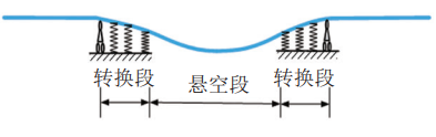 (b)懸空段和轉換段的力學(xué)模型示意圖