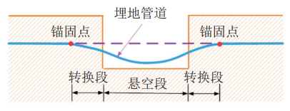 (a)埋地管道懸空變形示意圖