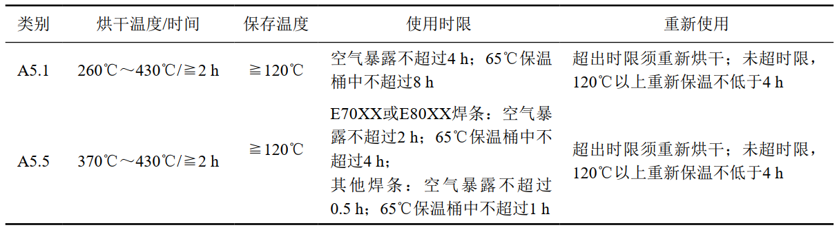 表 3 焊條烘干保存要求