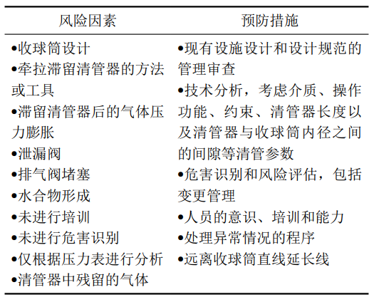 表 2 清管過(guò)程中風(fēng)險因素和預防措施