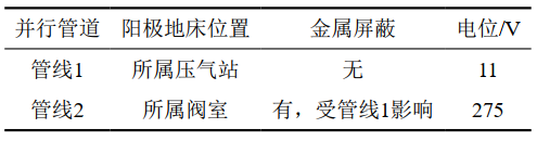 表 2 并行管道陽(yáng)極場(chǎng)金屬屏蔽影響對比