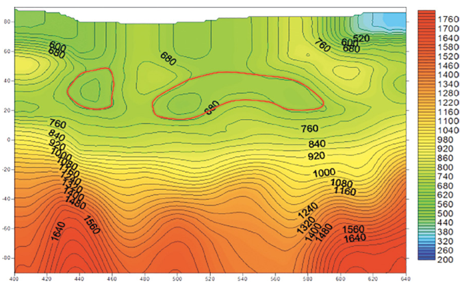圖 5 W1測線(xiàn)地電斷面(紅圈為推斷采空區)